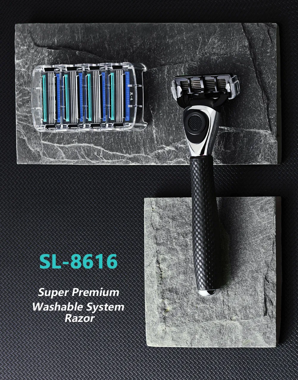 Experience the pinnacle of grooming with our men's six blade system razor. The precision-crafted stainless steel blade imported from Sweden, ensuring an unbeatable combination of sharpness and durability. The open back blade design simplifies cleanin...