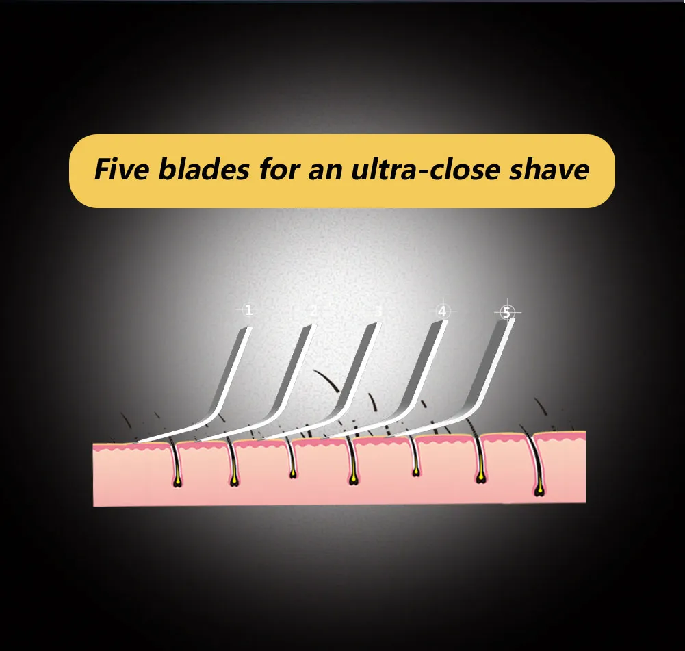 Experience a closer, smoother shave with our latest 5-blade men's razor, crafted for precision and comfort. Each ultra-sharp blade is made from imported Swedish stainless steel, ensuring exceptional durability and effortless glide. The lubricating st...